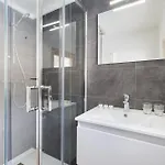 Les équipements de salle de bains comprennent les toilettes séparées, la baignoire et la douche, ainsi que le sèche-cheveux et les draps de bain.